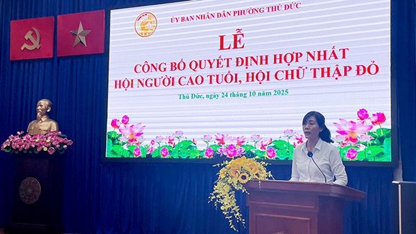 Chiều ngày 23/10, Ủy ban nhân dân phường Thủ Đức (Thành phố Hồ Chí Minh) tổ chức Lễ công bố Quyết định hợp nhất Hội Chữ thập đỏ phường Thủ Đức.