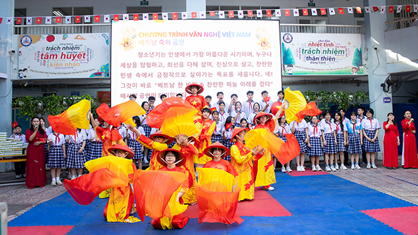 Chương trình diễn ra trong không khí sôi nổi, thân thiện với các tiết mục văn nghệ mang đậm bản sắc Việt Nam như đồng diễn Võ nhạc Vovinam học đường, mashup “Một vòng Việt Nam - Đi giữa trời rực rỡ”. Xen kẽ là các phần trình diễn K-pop Dance và võ Taekwondo… do Đoàn Hàn Quốc thực hiện, tạo nên không gian giao lưu đa sắc màu văn hóa giữa hai đơn vị.