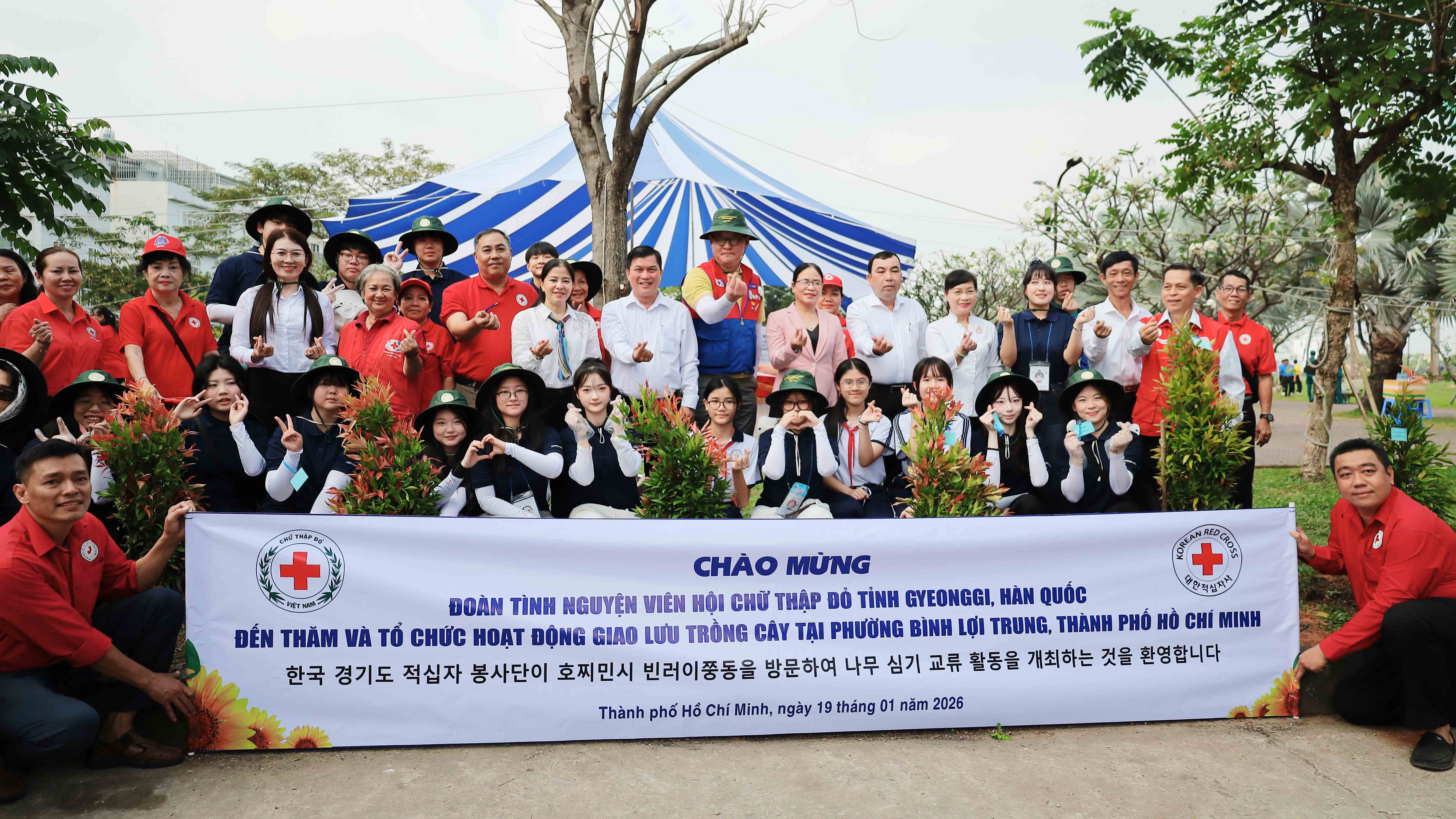 Sáng ngày 19/01/2026, tại Công viên Đặng Thùy Trâm, phường Bình Lợi Trung, Hội Chữ thập đỏ TP. Hồ Chí Minh phối hợp cùng chính quyền địa phương tổ chức hoạt động giao lưu, trồng cây xanh với sự tham gia của Đoàn Tình nguyện viên Hội Chữ thập đỏ tỉnh Gyeonggi, Hàn Quốc, trong khuôn khổ chương trình giao lưu tại Thành phố Hồ Chí Minh.