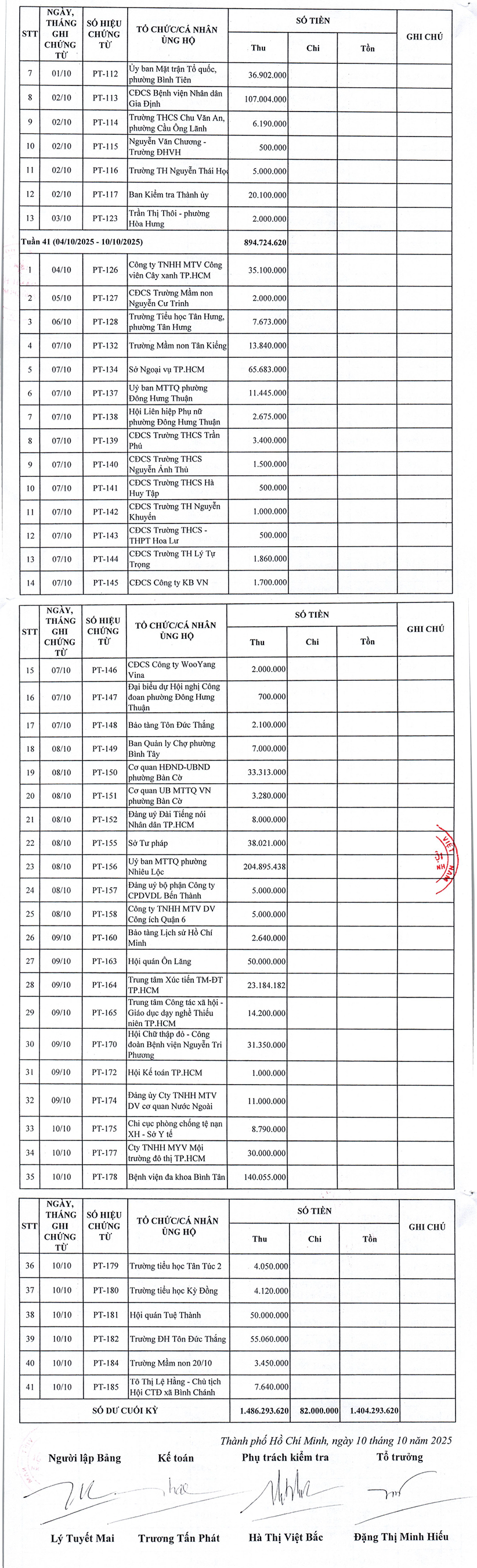 Tính đến hết ngày 10/10/2025, Hội Chữ thập đỏ Thành phố Hồ Chí Minh đã tiếp nhận tổng kinh phí: 3.888.526.699 đồng, trong đó, tiếp nhận tiền mặt với số tiền: 1.486.293.620 đồng, tiếp nhận bằng hình thức chuyển khoản/quét mã QR vào số tài khoản 2022, chủ tài khoản: Trung ương Hội Chữ thập đỏ Việt Nam với số tiền: 2.402.232.079 đồng.