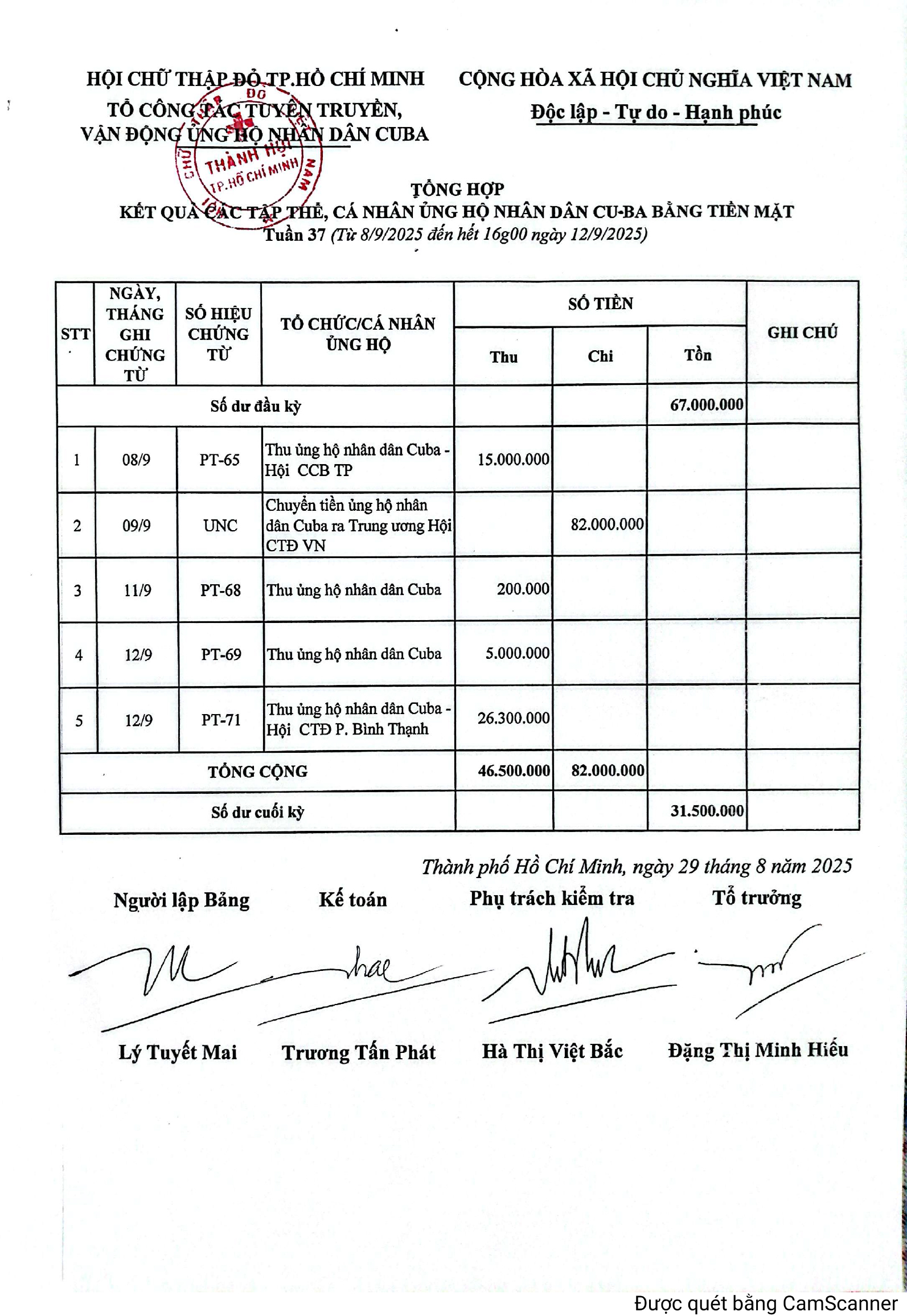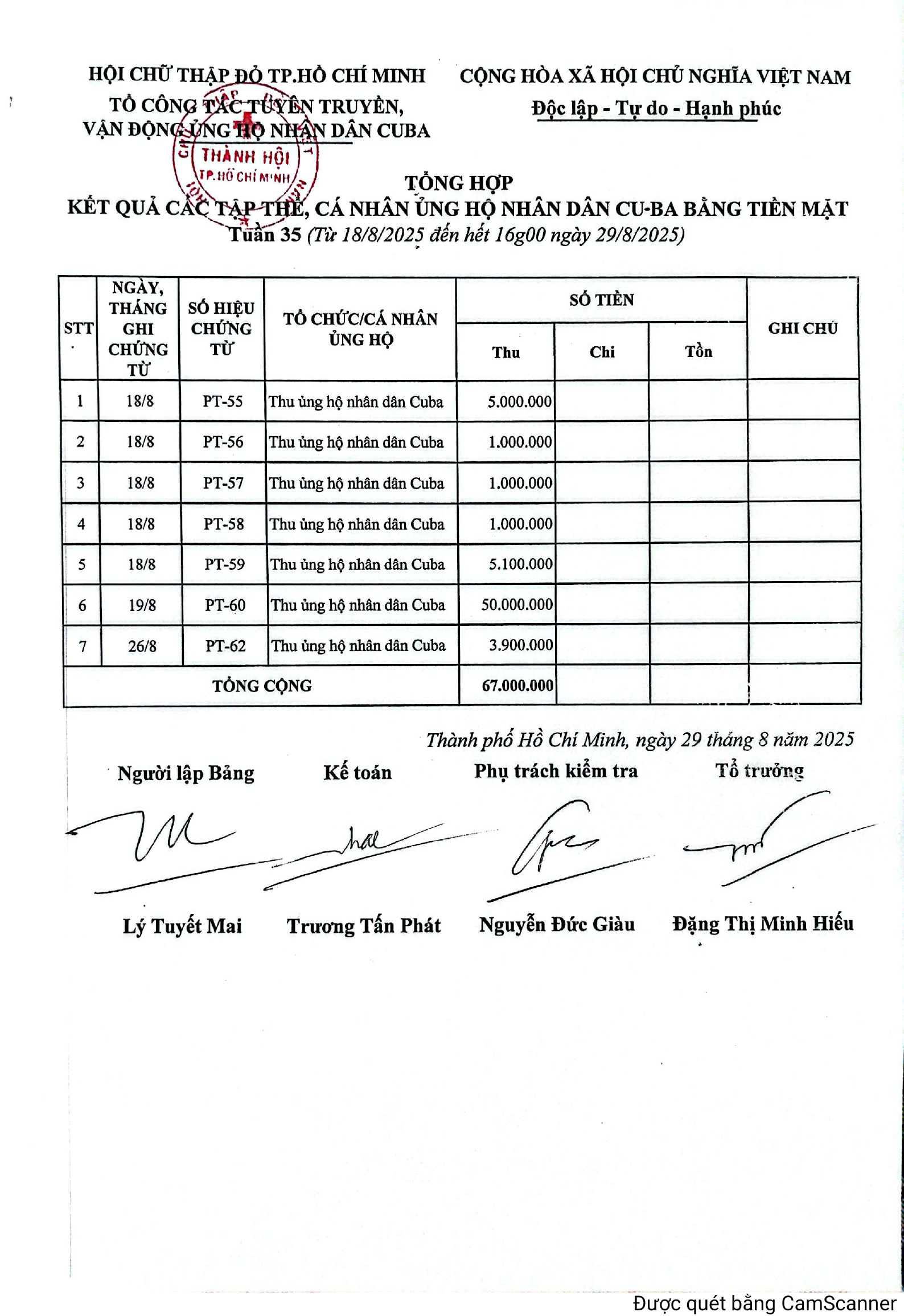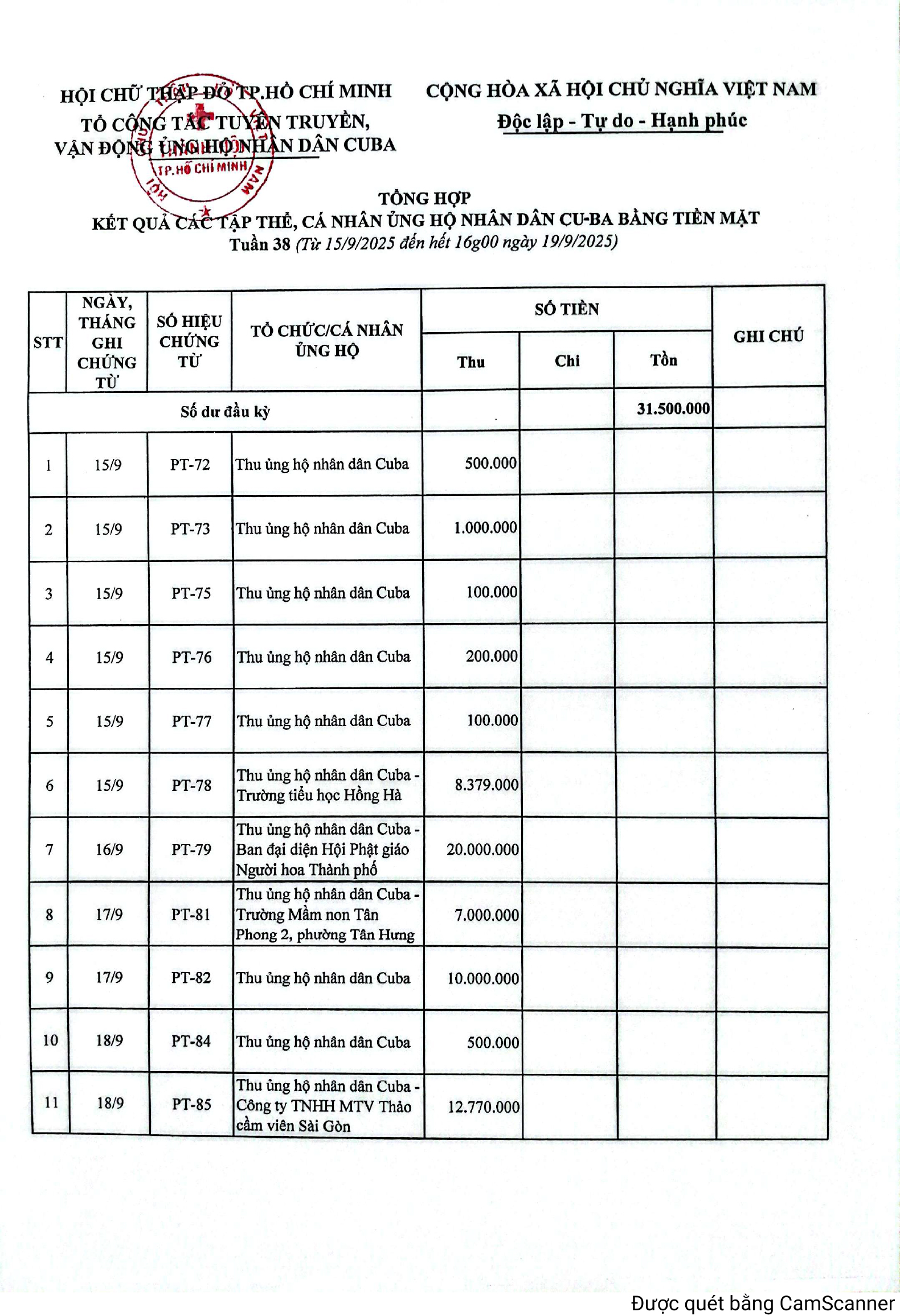 Kết quả vận động ủng hộ nhân dân Cuba (từ ngày 18/8/2025 đến 03/10/2025) 11/10/2025 355 0 Bản tin Thành Hội